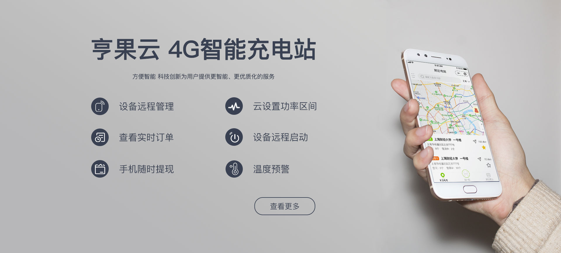 實時監測 | 遠程啟動 | 收益統計 | 設備管理 | 場地管理 | 功能設置 | 記錄查詢 | T+1 到賬